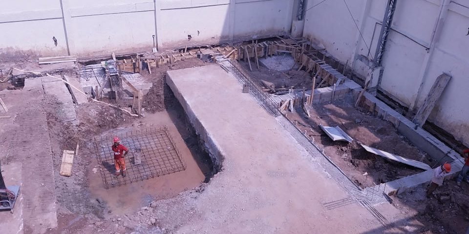 Tendo em vista a fragilidade do solo e o peso do cofre dessa construção que tem dimensões faraônicas, tivemos que mesclar fundações profunda com estacas de até 18m com fundações rasas de sapatas de até 3,30m x 3,30 de base.