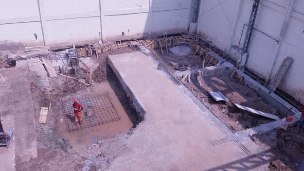 Tendo em vista a fragilidade do solo e o peso do cofre dessa construção que tem dimensões faraônicas, tivemos que mesclar fundações profunda com estacas de até 18m com fundações rasas de sapatas de até 3,30m x 3,30 de base.